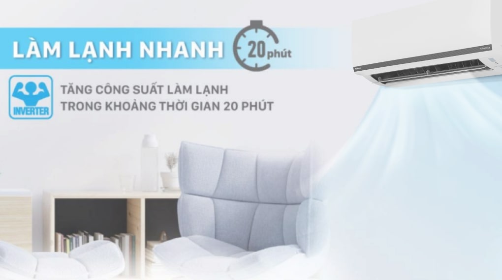 Công nghệ hiện đại này trên điều hòa Daikin Inverter 18000 BTU 1 chiều FTKB50WAVMV cho phép người dùng tận hưởng cảm giác thư giãn, mát lạnh nhanh chóng chỉ trong 20 phút, tiết kiệm thời gian khi sử dụng.