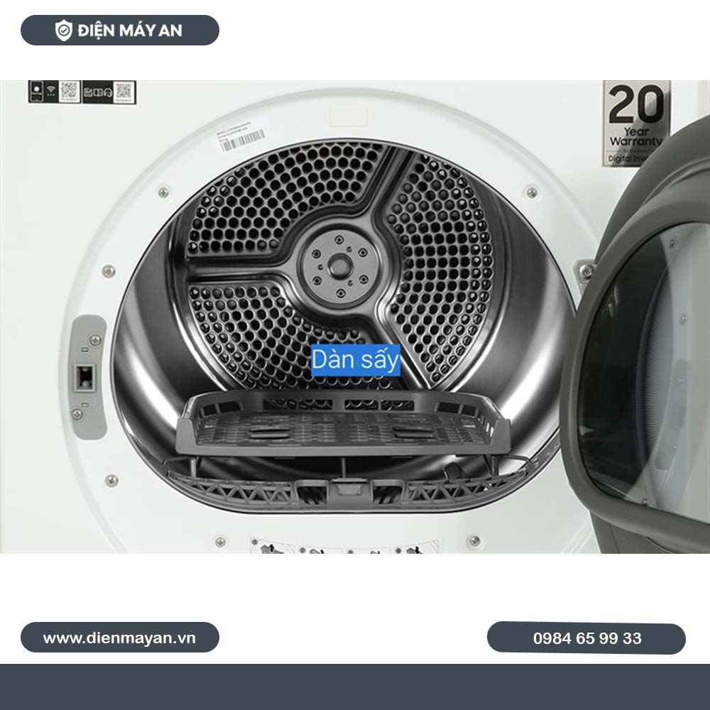 - Máy sấy SamSung DV90BB9440GH/SV hoạt động mạnh mẽ với động cơ truyền động gián tiếp (Dây Curoa) với độ bền cao, kết hợp với công nghệ Digital Inverter tiết kiệm điện hiệu quả cùng nam châm vĩnh cửu hạn chế ma sát khi vận hành, mang tới độ êm ái, tránh tiếng ồn rung lắc khi dùng. Đặc biệt, động cơ được SamSung bảo hành đến 20 năm.