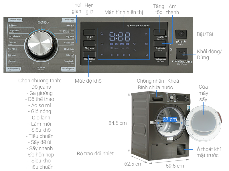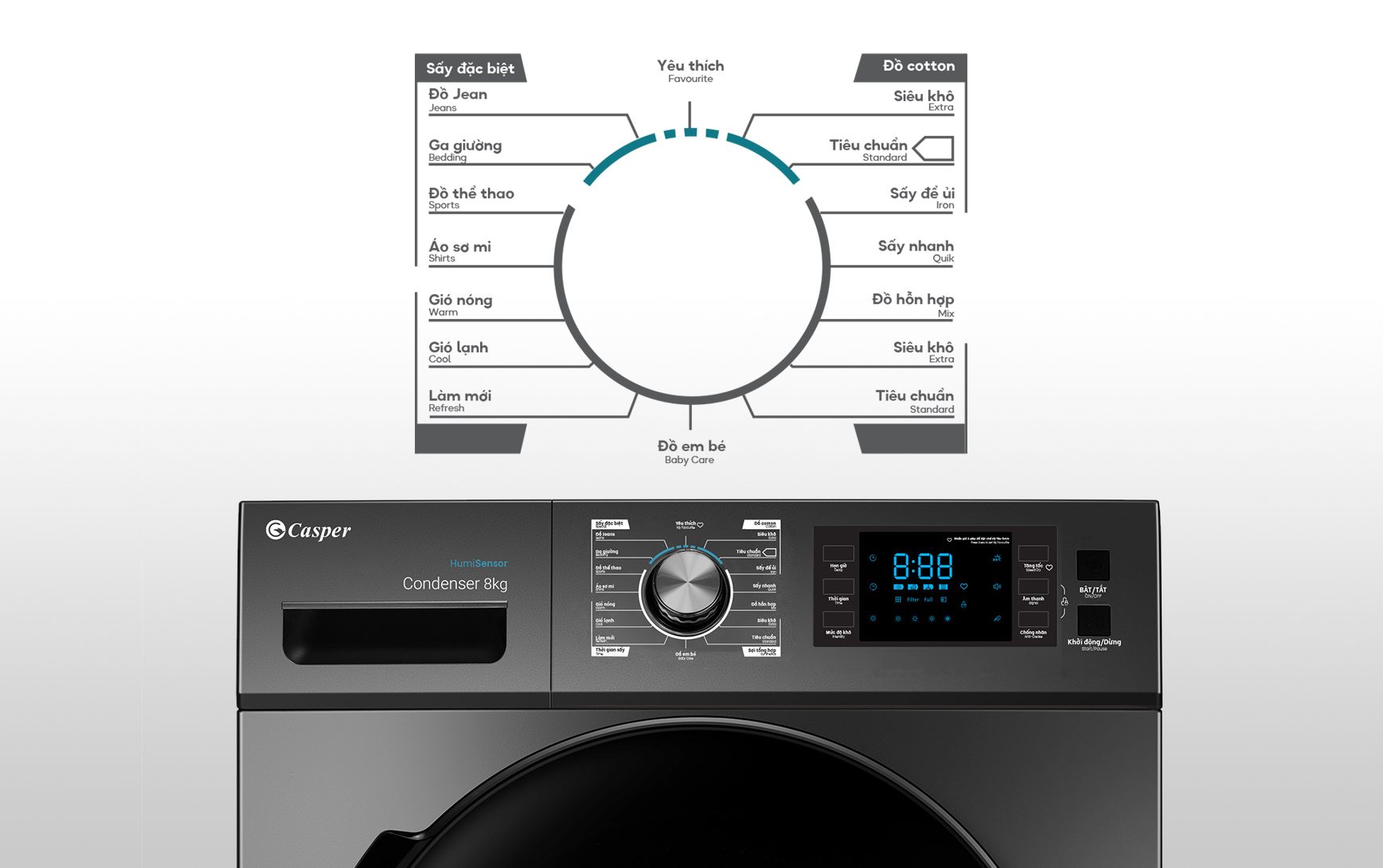 Máy sấy Casper TD-80CGB sở hữu thiết kế hiện đại, tông màu ghi xám tinh tế rất dễ dàng để kết hợp với những phong cách nội thất khác nhau. Ngoài ra, bảng điều khiển song ngữ Anh – Việt giúp bạn dễ dàng làm quen và sử dụng được ngay mà không cần tốn thời gian nghiên cứu hướng dẫn sử dụng.