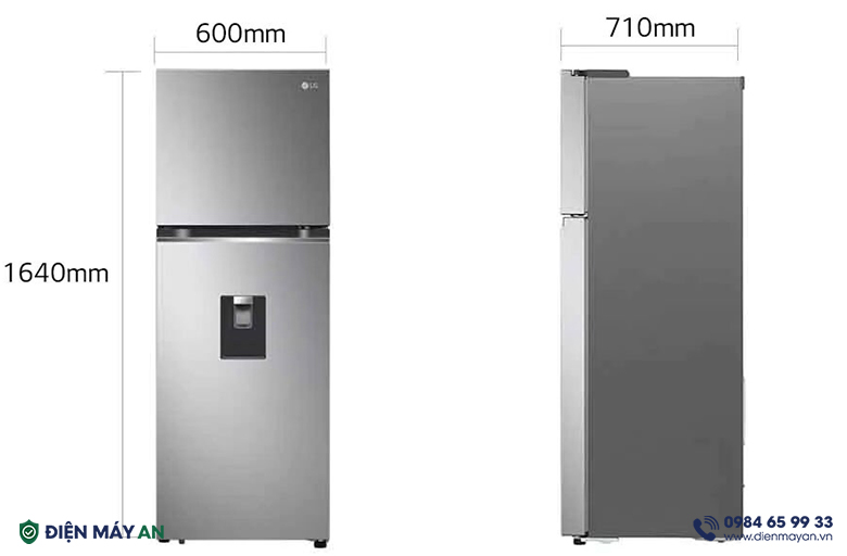 | Kích thước tủ lạnh: | 600 x1640 x 710 mm |