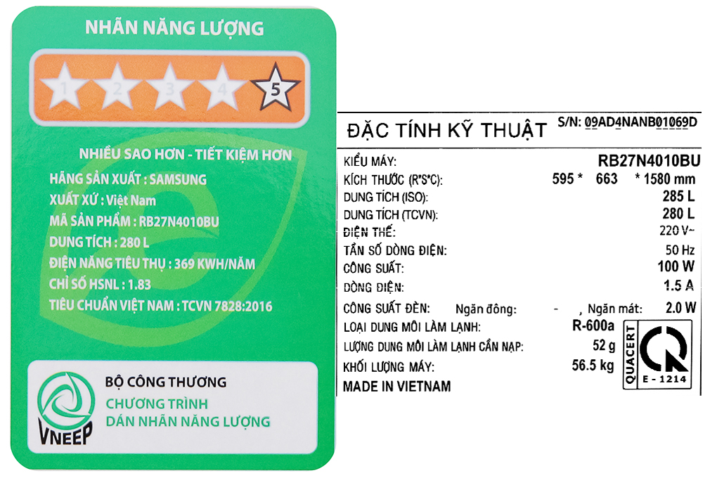 Chiếc RB27N4010BU/SV phù hợp cho gia đình từ 2 đến 3 người sử dụng, với dung tích 280 lít giúp bảo quản thực phẩm tươi ngon.